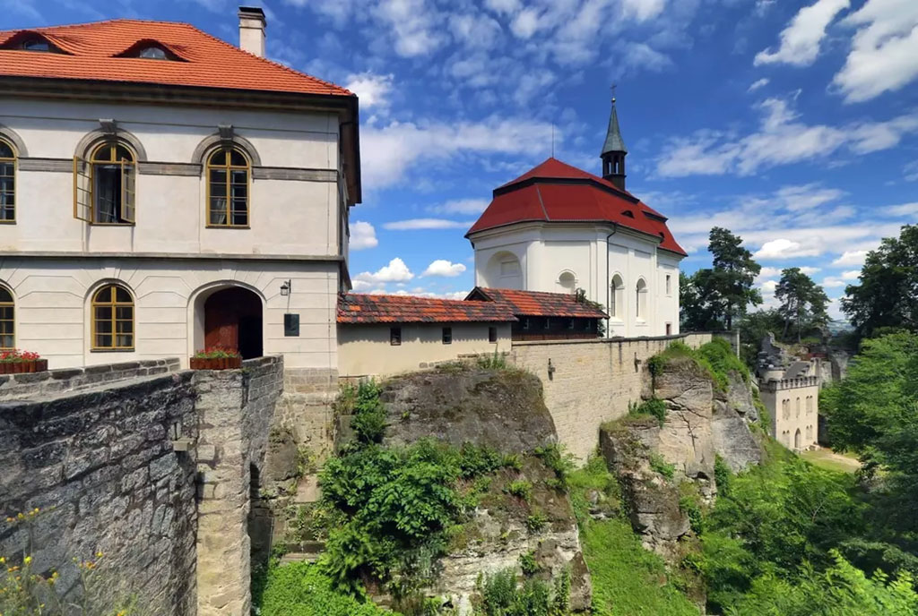 - Kamenný most a kaple sv. Jana Nepomuckého: Nádherný vstupní portál a barokní dominanta hradu z 18. století. Na prvním nádvoří navíc najdete malou kapli s obrazem, který je údajnou podobou básníka Karla Hynka Máchy.