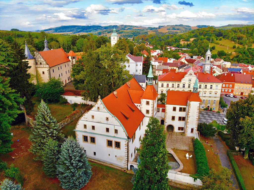 [Zde vlož video – např. průlet dronem nad malebným komplexem Horního a Dolního zámku a historickým centrem města]