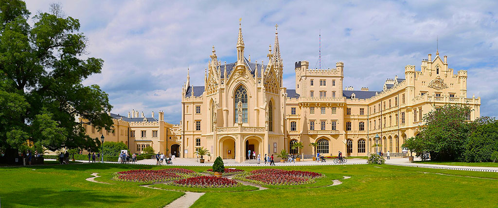 Lichtenštejnové vlastnili lednické panství těžko uvěřitelných 700 let. Původní renesanční zámek nechali na konci 17. století barokně přestavět opravdovými mistry (např. Johannem Bernhardem Fischerem z Erlachu), ale konečnou, novogotickou tvář imitující anglickou tudorovskou gotiku mu vtiskli až v polovině 19. století. Celý tento architektonický šperk je navíc zasazen do jednoho z největších a nejkrásnějších krajinářských parků v Evropě.