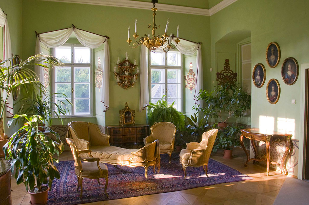 • Zámecké interiéry: Díky nadšencům z „Kruhu přátel Manětínska“ se v minulém století podařilo zachránit a vrátit do zámku spoustu rozkradeného mobiliáře. Uvidíte tu krásné fresky i dobový nábytek.